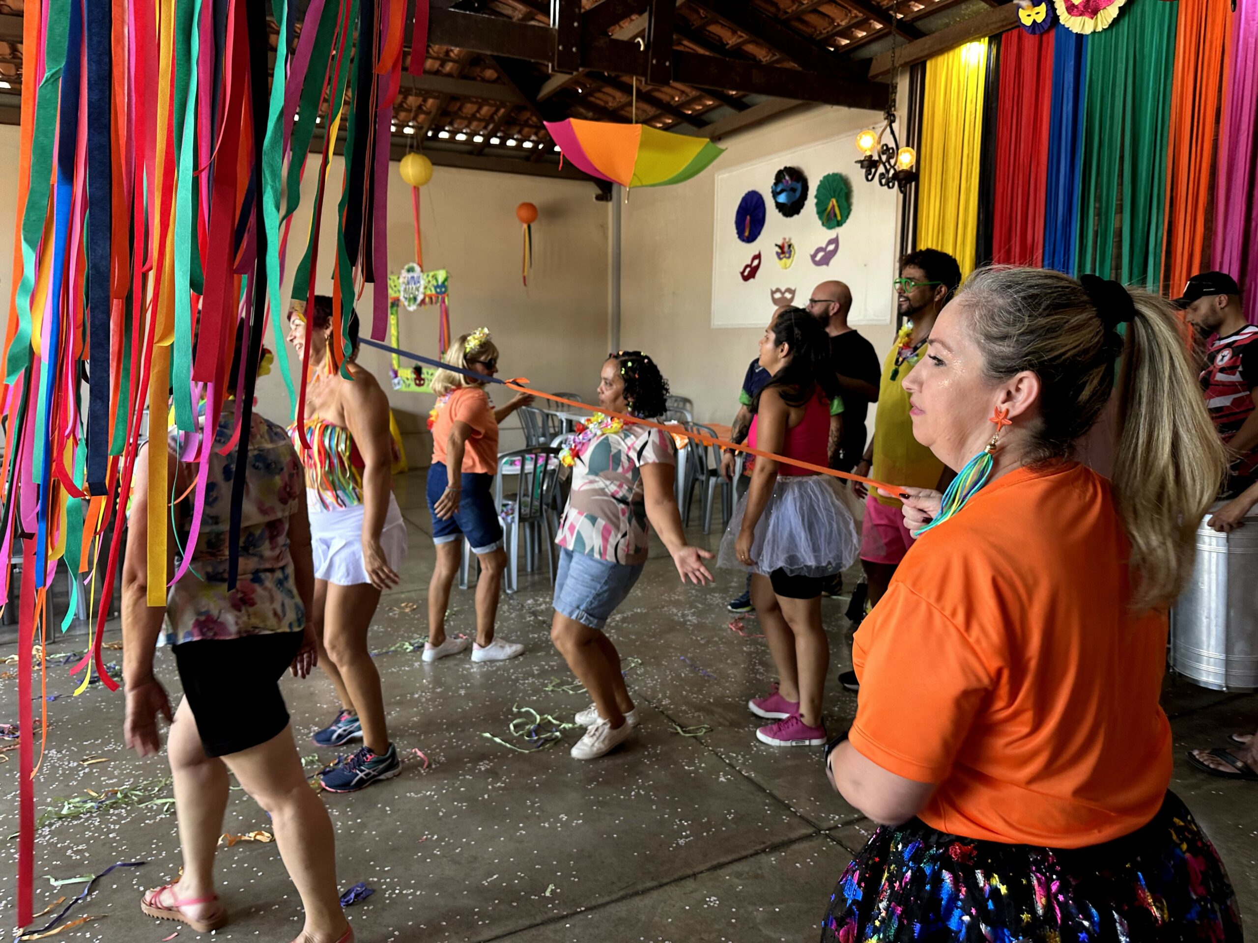 Purpurina, música, alegria, diversão e um colorido especial agitaram o pré-carnaval do Programa Viva Mais, vinculado à Secretaria de Governo da Prefeitura de Hortolândia. Aproximadamente 100 matriculados nas atividades do programa, maiores de 18 anos, participaram da festa realizada na manhã desta sexta-feira (21/02), abrindo as comemorações do Carnaval e marcando a retomada das atividades neste ano. As marchinhas de Carnaval deram o tom da alegria e divertiram os participantes. No início da próxima semana, a rotina normal das atividades no espaço serão retomadas na Rua Pedro Pereira dos Santos, 147, Jardim Mirante.