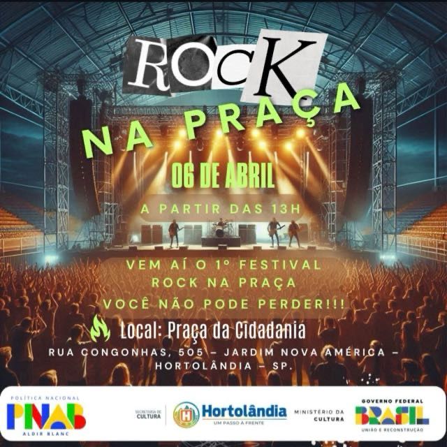 Este domingo (06/04) é dia de rock, bebê! O festival Rock na Praça vai abalar Hortolândia com o som tonitruante das guitarras. O evento irá começar, a partir das 13h, na Praça da Cidadania, localizada na rua Congonhas, 505, Jardim Nova América.