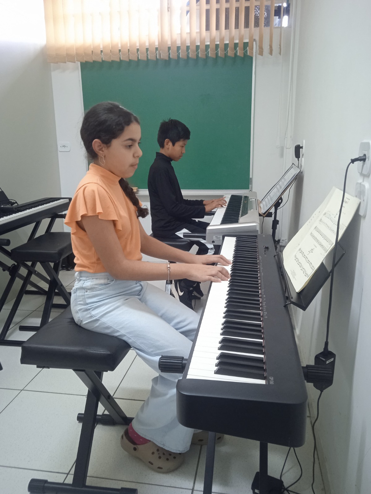 Já para as crianças com algum conhecimento musical, haverá aulas sobre flauta, piano, percussão, dentre outros instrumentos, e também de regência.