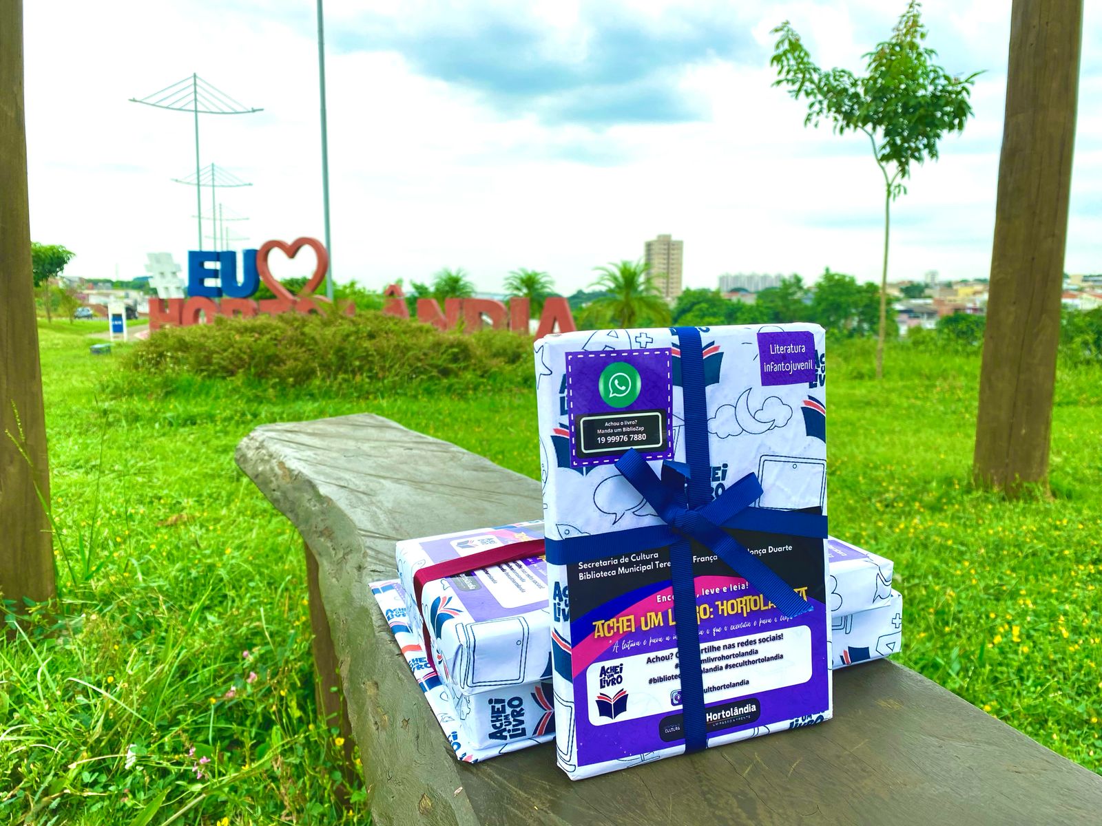 A Biblioteca Municipal de Hortolândia irá espalhar 80 livros, de ficção e não ficção, em vários pontos e locais do parque, como bancos, mesas, árvores, dentre outros. Os livros estarão embrulhados em papel na cor branca e laço azul com identificação da biblioteca.