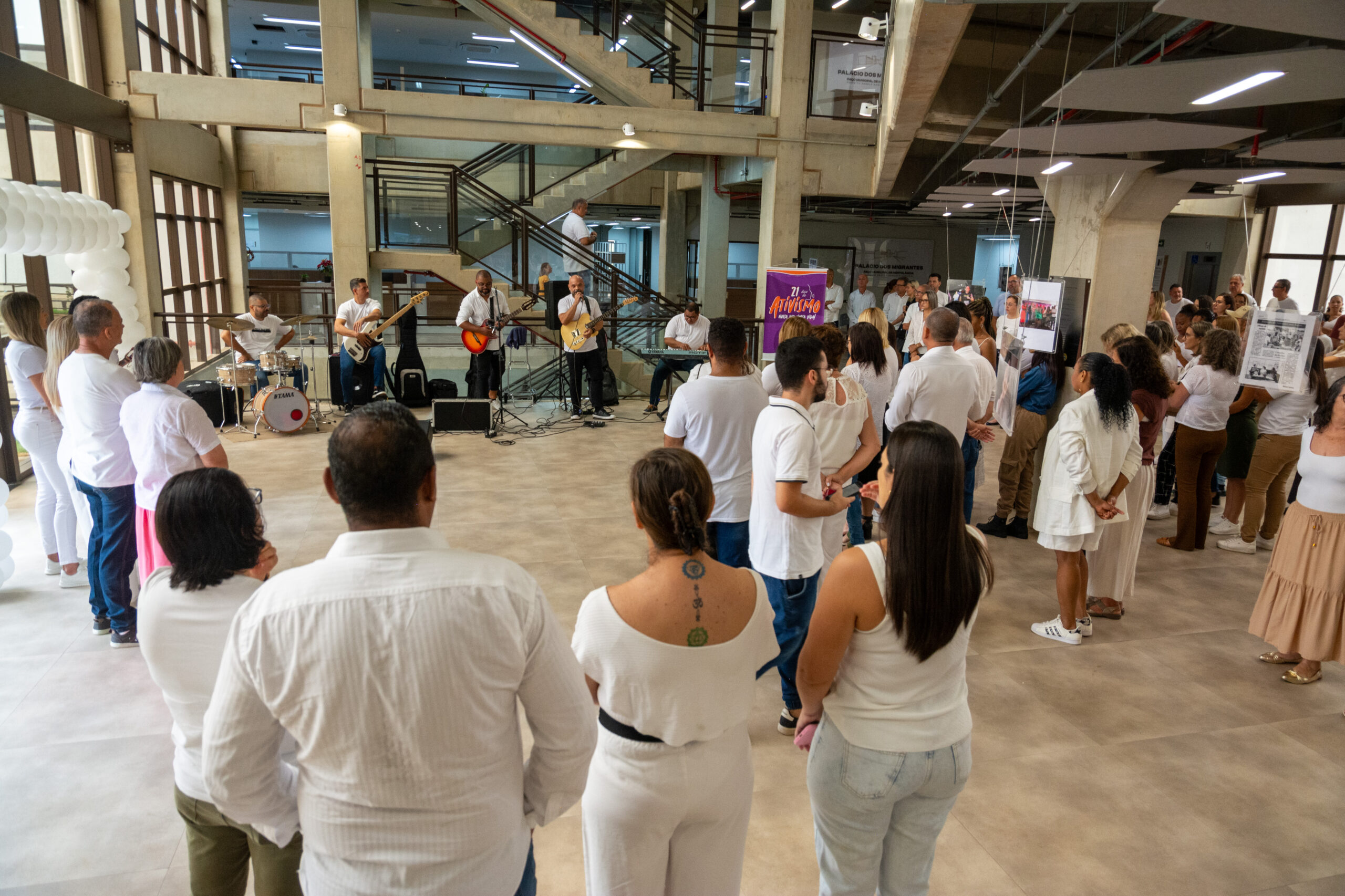 O encerramento da campanha “21 Dias de Ativismo: Nossa Voz, Nossa Vida” contou com a apresentação musical do Quinteto Cultura, grupo vinculado à Secretaria de Cultura. O repertório interpretado pelo grupo incluiu clássicos da Bossa Nova, como “Wave” e “Garota de Ipanema”, de Tom Jobim, e “Onde Anda Você”, de Toquinho e Vinícius de Moraes.