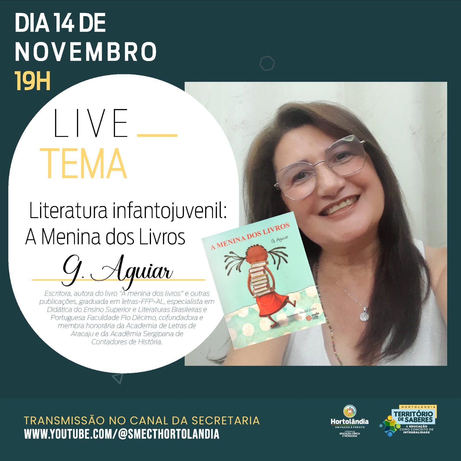 A primeira, que acontecerá nesta quinta-feira (14/11), às 19h, será sobre “Representatividade na literatura infantojuvenil”. O tema será abordado pela escritora G. Aguiar, autora da obra “A Menina dos Livros”, distribuída em 2023 na edição do Literalendo, evento realizado pela Prefeitura para incentivar a leitura em Hortolândia. Graduada em Letras e membro honorário de diversas academias literárias, a palestrante abordará a importância da representatividade na literatura para crianças e adolescentes. A palestra visa estimular o uso, dentro e fora de sala de aula, de obras que reflitam a diversidade cultural, fortalecendo a identidade e autoestima dos jovens leitores.