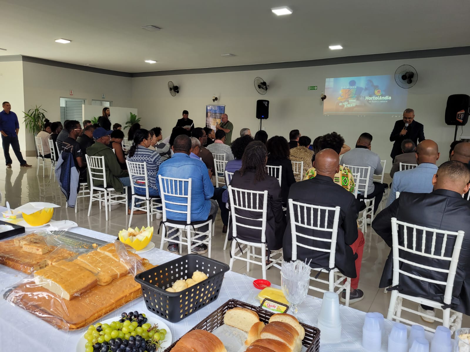 Cerca de 100 pessoas participaram, na manhã desta segunda-feira (12/05), do “Café com Afroempreendedores”, promovido pela Prefeitura de Hortolândia, em parceria com o Sebrae (Serviço Brasileiro de Apoio às Micro e Pequenas Empresas), no Gold Eventos, no Jd. Nossa Senhora de Fátima. O prefeito José Nazareno Zezé Gomes prestigiou o encontro, que integra a programação de aniversário pelos 34 anos de emancipação da cidade.