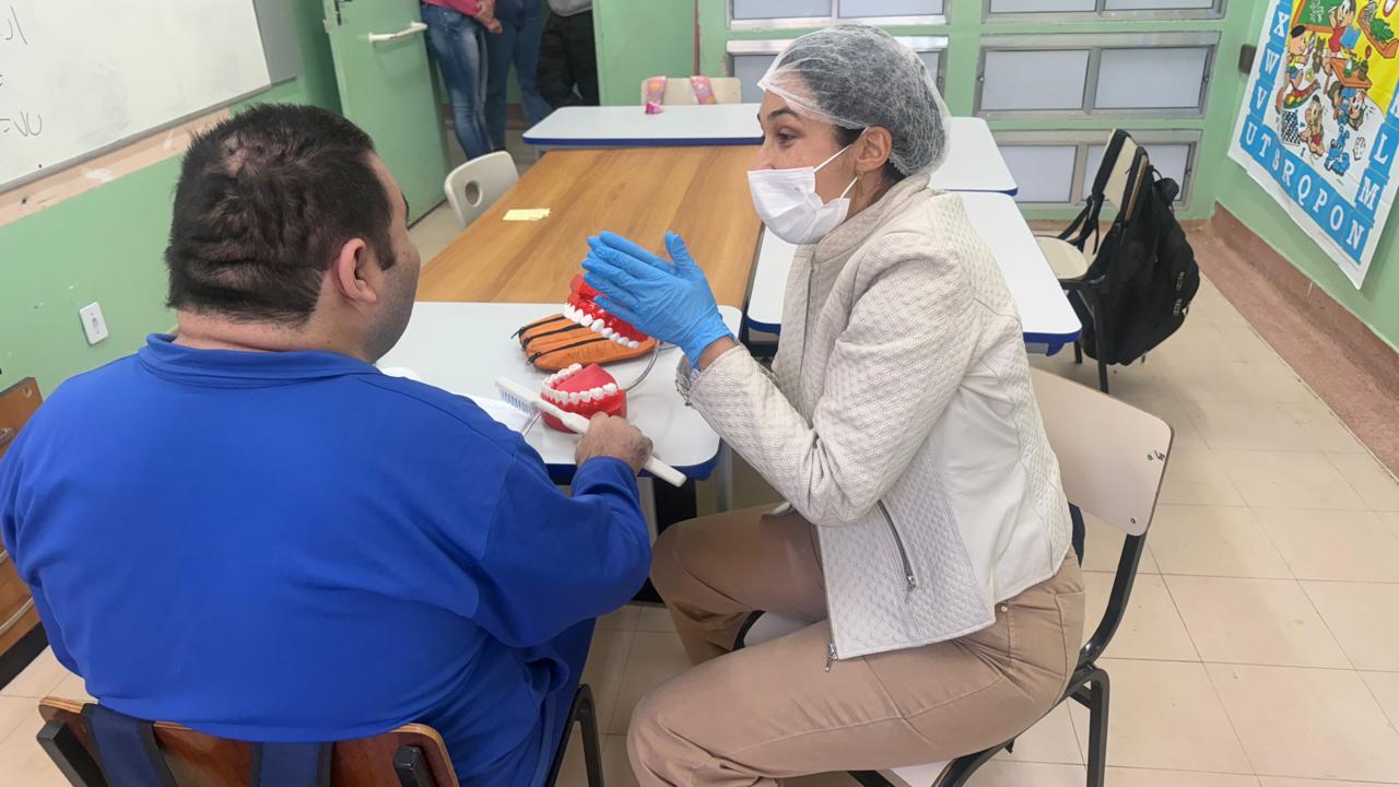 Durante a ação, o Setor de Odontologia da Secretaria de Saúde fez a avaliação bucal dos estudantes e o encaminhamento dos casos com necessidade de atendimento em consultório odontológico.