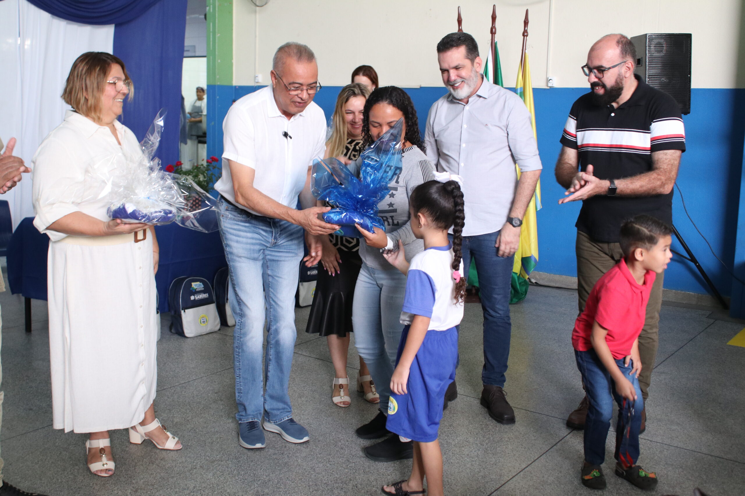 A entrega dos kits escolares, no início do ano letivo, por parte da Prefeitura é uma ação já esperada pela comunidade escolar e bem-recebida por adultos e crianças.