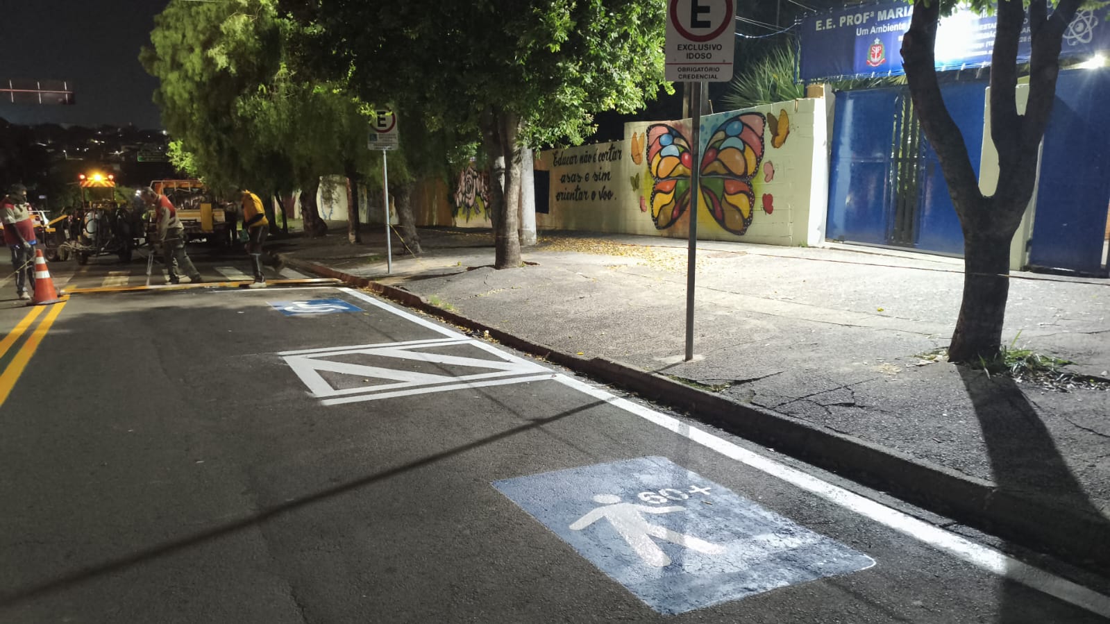 Vagas especiais para idosos e pessoas com deficiência foram pintadas pela Prefeitura de Hortolândia em ruas no entorno do Centro de Convivência da Melhor Idade (CCMI) e do Centro de Formação dos Profissionais em Educação “Paulo Freire”, no bairro Remanso Campineiro. O trabalho também já foi realizado na região central (rua do Fundo Social de Solidariedade e adjacências), em trechos da ciclovia da avenida Olívio Franceschini (parada Pq. dos Pinheiros do transporte coletivo intermunicipal), na parte interna do OAPE (Observatório Ambiental Parque Escola), ruas do Jardim Rosolém (entorno de comércios), Vila Inema e da Vila Real (ao lado das obras de construção do novo viaduto). No ano passado, foram finalizados os reforços e novas pinturas de sinalização de solo em mais de 20 mil metros de ruas.