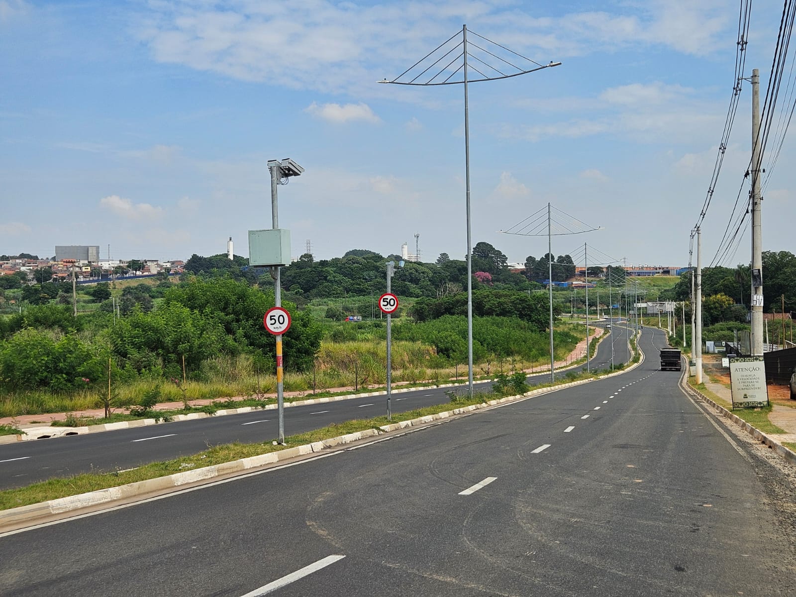Motoristas devem ficar atentos ao novo radar controlador de velocidade implantado pela Prefeitura de Hortolândia no sentido bairro/Centro da avenida Sabina Baptista de Camargo, próximo da rotatória e do Palácio dos Migrantes Paço Municipal “Prefeito Ângelo Augusto Perugini”, chegando no cruzamento com a estrada Carlos Roberto Prataviera. O equipamento inicia a operação no dia 20 deste mês. No trecho, a velocidade máxima para o tráfego é de 50km/h. O objetivo da implantação do dispositivo é garantir a segurança viária de pedestres e motoristas, evitando a circulação acima do limite de velocidade permitido, ação que causa acidentes. De acordo com a Secretaria de Mobilidade Urbana, atualmente, a cidade conta com 36 pontos de radares instalados.