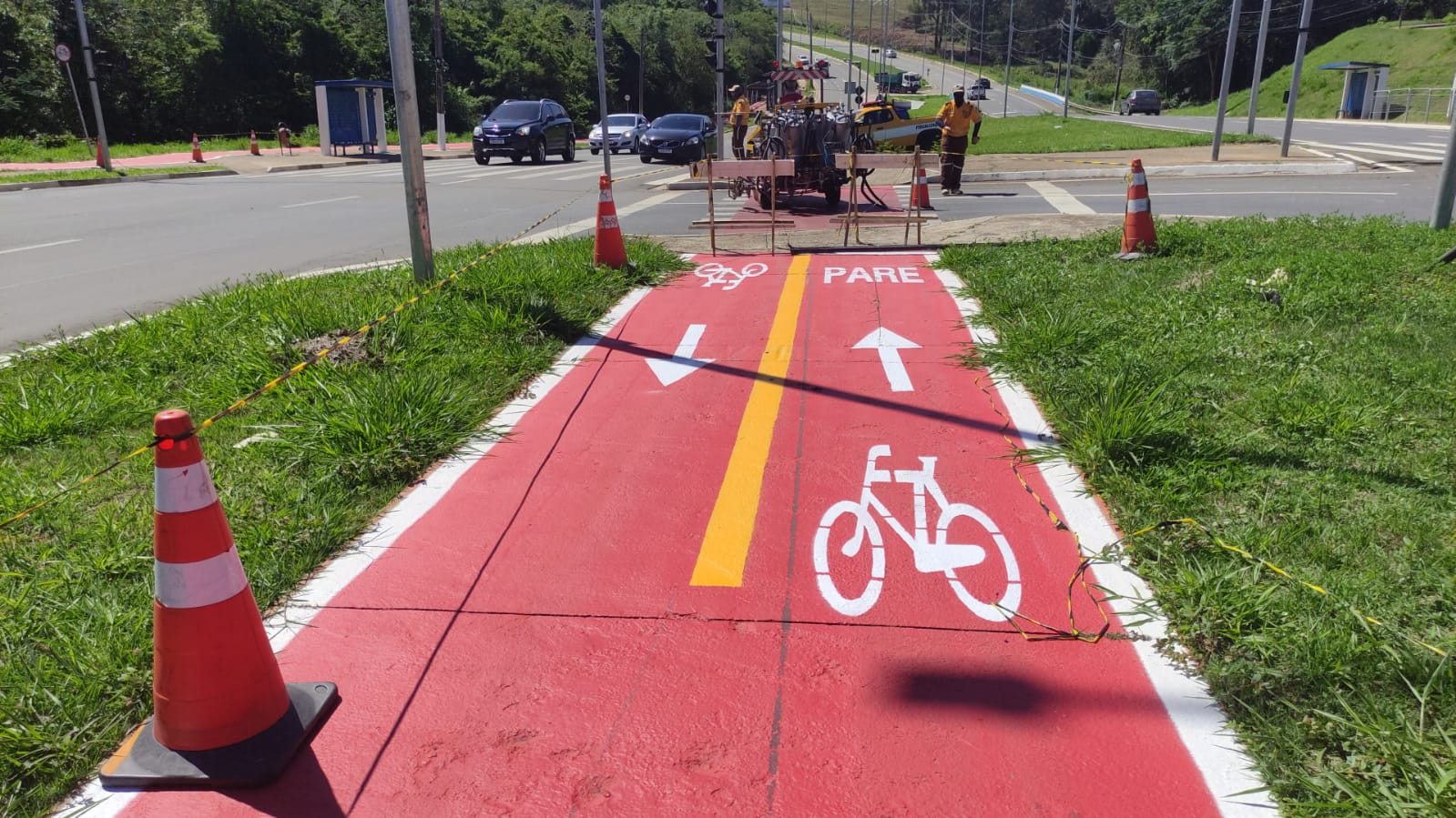 A segurança viária segue como prioridade em Hortolândia e os aproximadamente 44 quilômetros de ciclovias também recebem ações da Prefeitura para garantir a tranquilidade de ciclistas, pedestres e motoristas que circulam na cidade aumentando a visibilidade. Neste início da semana, foi retomado o reforço da sinalização de ciclovias que margeiam as avenidas São Francisco de Assis, Anhanguera e Thereza Ana Cecon Breda até o IFSP (Instituto Federal de São Paulo). Estas ciclovias que recebem a etapa do serviço perfazem juntas em torno de sete quilômetros de extensão. O trabalho inclui o reforço da sinalização na cor vermelha da ciclovia em si, dos pictogramas, que são símbolos visuais para orientar ciclistas, pedestres e motoristas, e de palavras como “PARE”.