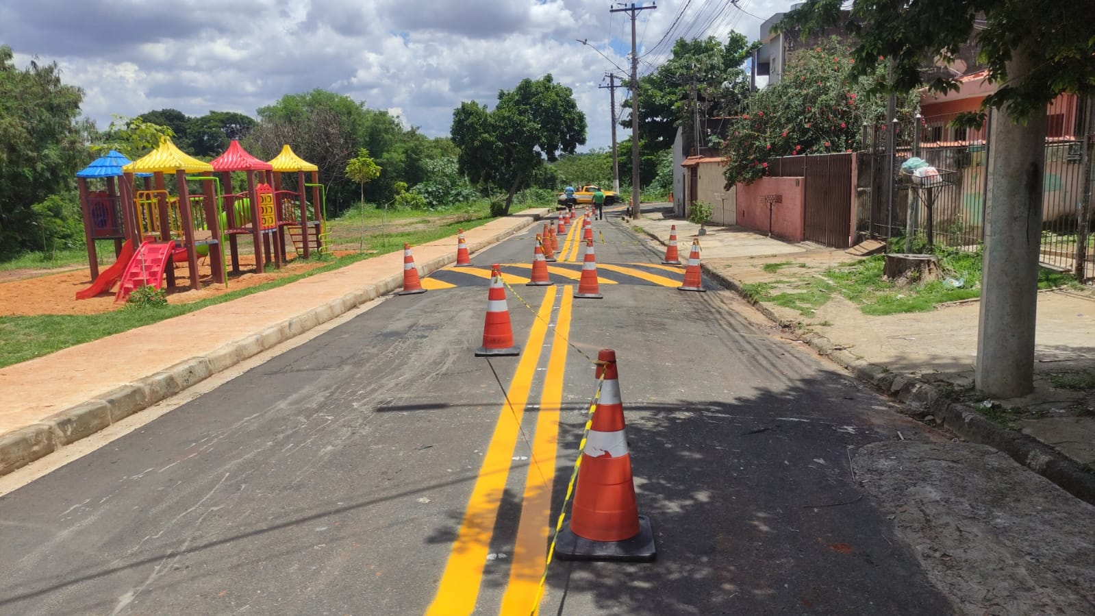 A organização do fluxo do trânsito em três bairros de Hortolândia foi concluída por equipes da Prefeitura nesta segunda-feira (18/11), com a implantação de lombadas e o reforço da sinalização de solo. No Jardim Sumarezinho, a ação foi realizada na rua Cosmo Pereira Gomes, em frente a nova área de lazer do bairro, espaço revitalizado pela Administração Municipal. No Parque Orestes Ôngaro, o serviço contempla uma rua residencial e contribui com o controle do limite de velocidade permitido para o tráfego dos motoristas.