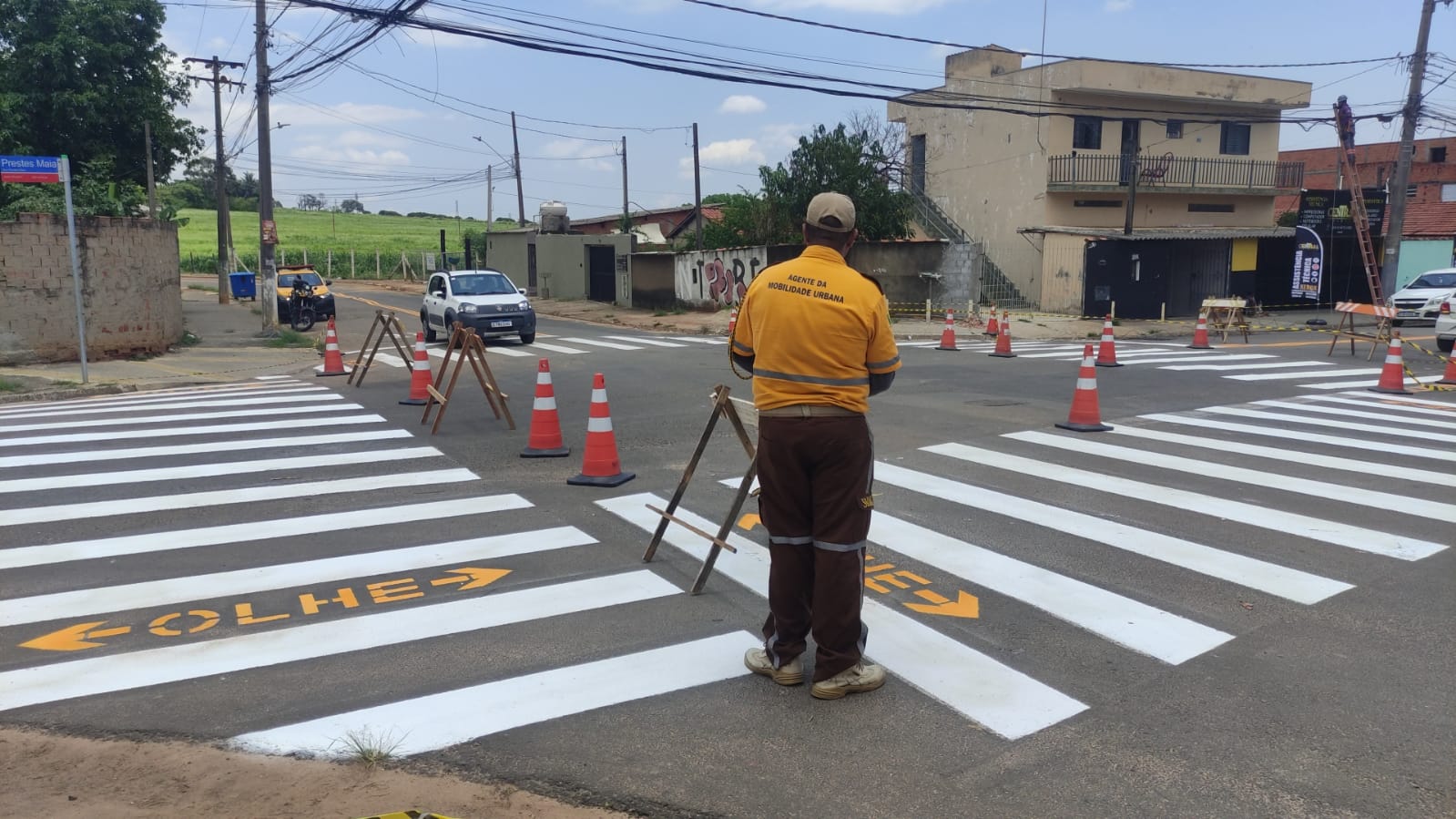 Nesta semana, a organização do fluxo do trânsito no Jardim Amanda foi concluída e, além disso, equipes da Prefeitura realizaram a implantação de uma lombada e do reforço de sinalização de solo em trecho da rua Zacarias Costa Camargo, no Remanso Campineiro E na rua Joaquim Gomes em frente ao Centro de Convivência Incluir.