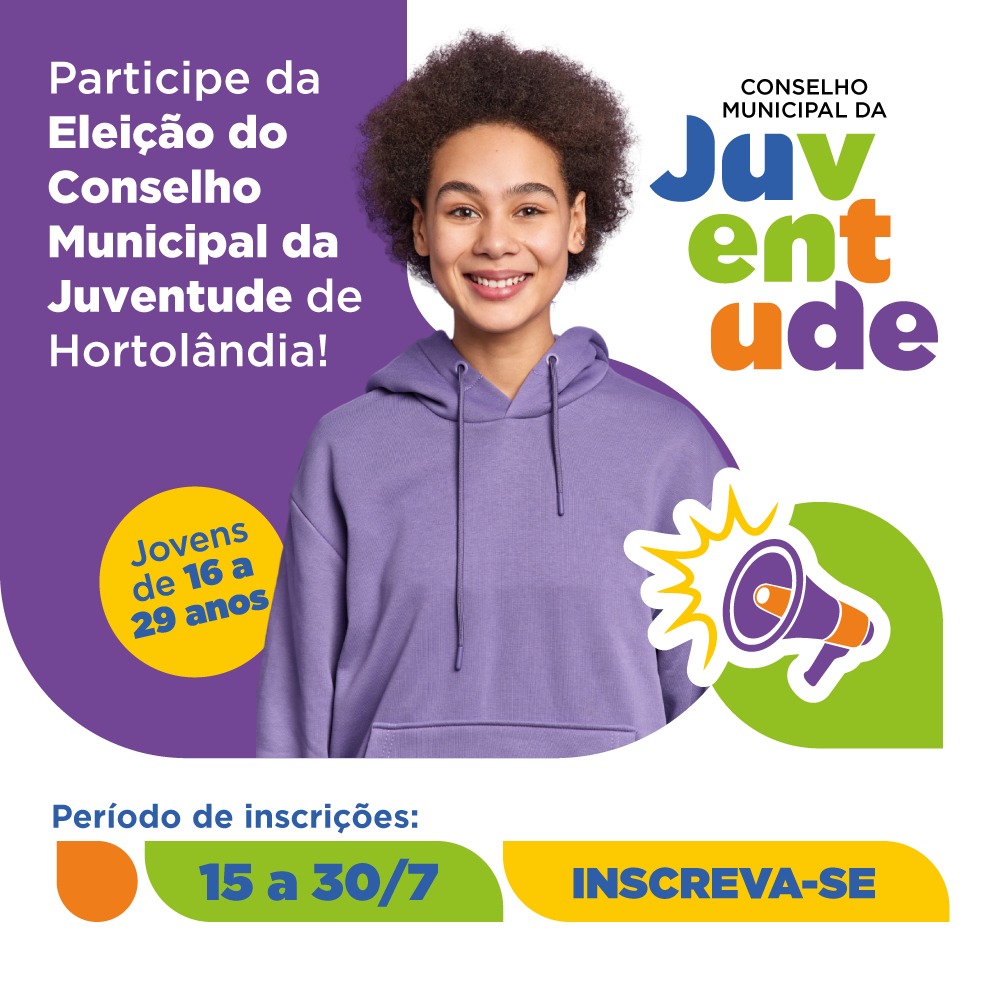Interessados em se candidatar para participar da eleição do Conselho Municipal de Juventude (Biênio 2025-2027) podem realizar a inscrição até o dia 30 de julho. A inscrição acontece de forma online, pelo site da Prefeitura, ou no Departamento de Direitos Humanos e Políticas Públicas da Prefeitura de Hortolândia, localizado no Paço Municipal Prefeito Angelo Augusto Perugini – Palácio dos Migrantes. O atendimento é em dias úteis, das 8h às 12h e das 13h às 16h30.