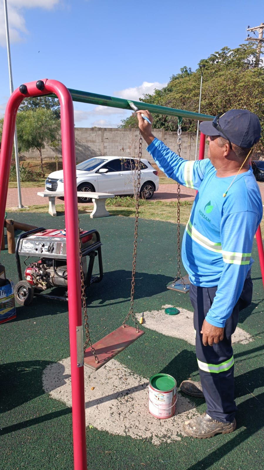 Mais uma etapa de ações de manutenção para consertar dispositivos públicos vandalizados foi concluída por equipes da Prefeitura de Hortolândia neste mês. Agora, o trabalho foi realizado em brinquedos do playground da Praça da Cidadania, espaço de lazer localizado no Jardim Nova América. No local, foram trocadas diversas peças de diferentes aparelhos para garantir o correto funcionamento dos brinquedos e segurança para quem utiliza o playground. Além da Praça da Cidadania, neste mês, a Administração Municipal já trocou peças vandalizadas no  PEV (Ponto de Entrega Voluntária) do Jardim Amanda e aparelhos de academia de ginástica ao ar livre do OAPE (Observatório Ambiental Parque Escola), no Jardim Santa Clara do Lago. O trabalho também aconteceu em dispositivos danificados no Parque Socioambiental Chico Mendes, na região central e no Parque Socioambiental Lago da Fé, no Parque Gabriel. Neste local, em um ano, já foi realizada a troca das torneiras dos bebedouros 30 vezes.