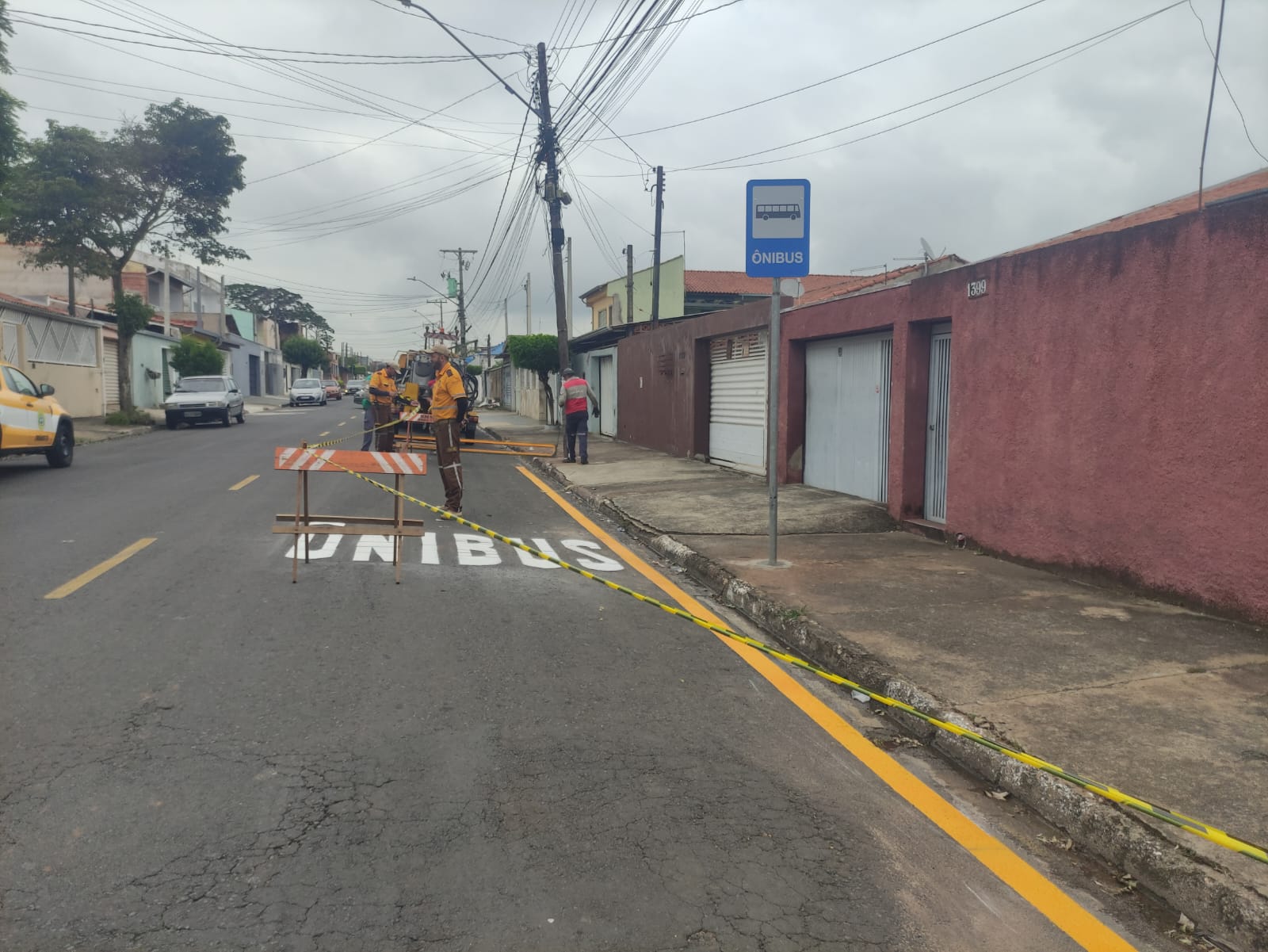 Equipes realizaram a pintura em pontos de ônibus e o reforço da sinalização de solo em seis bairros da cidade