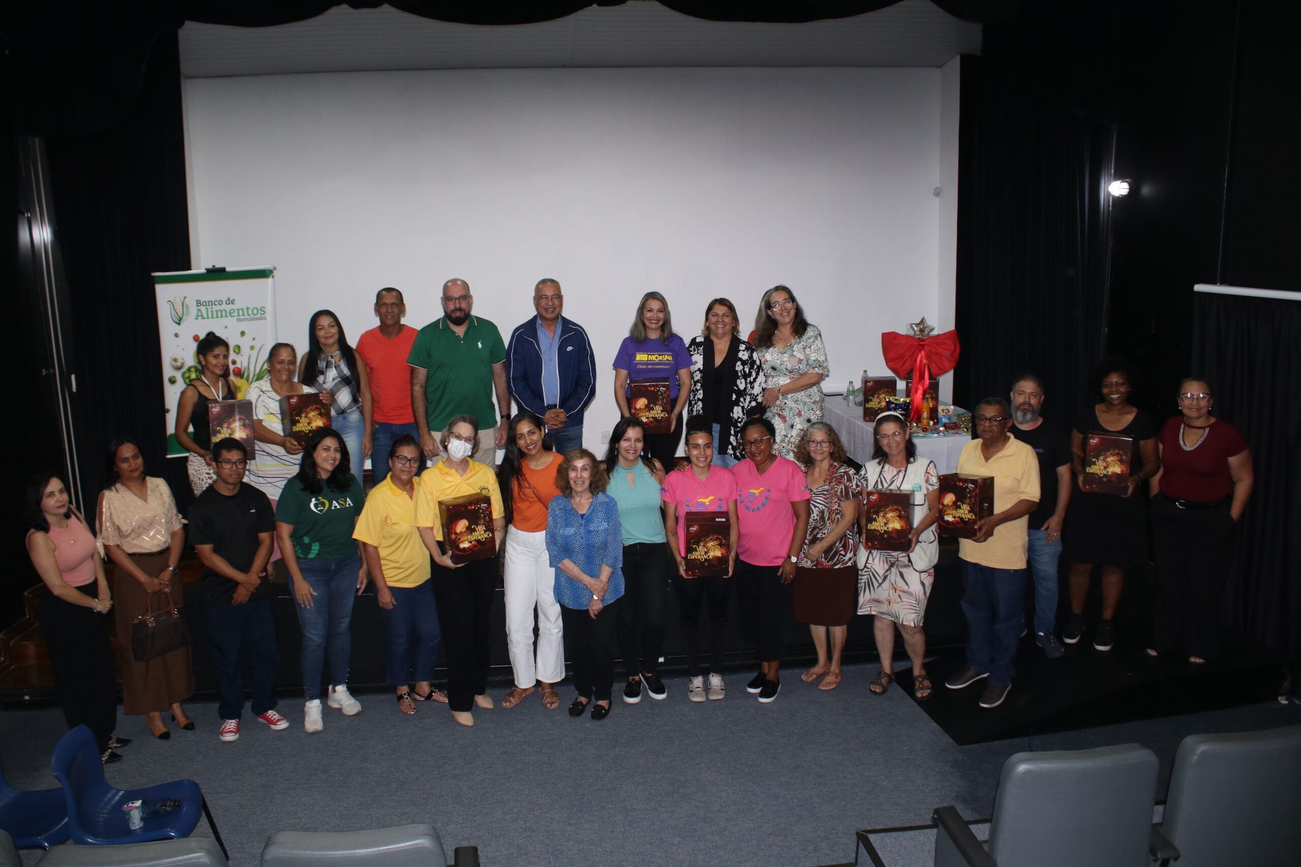 Representantes de OSCs (Organizações da Sociedade Civil) e projetos sociais de Hortolândia, atendidos pelo Fundo Social de Solidariedade e pelo Programa Banco de Alimentos da Prefeitura, participaram, na tarde desta segunda-feira (02/12), da cerimônia de entrega simbólica das cestas natalinas. Ao som do grupo musical Madeira Brasil, a cerimônia aconteceu no teatro “Augusto Boal”, da Secretaria de Cultura, no Jd. Amanda II.