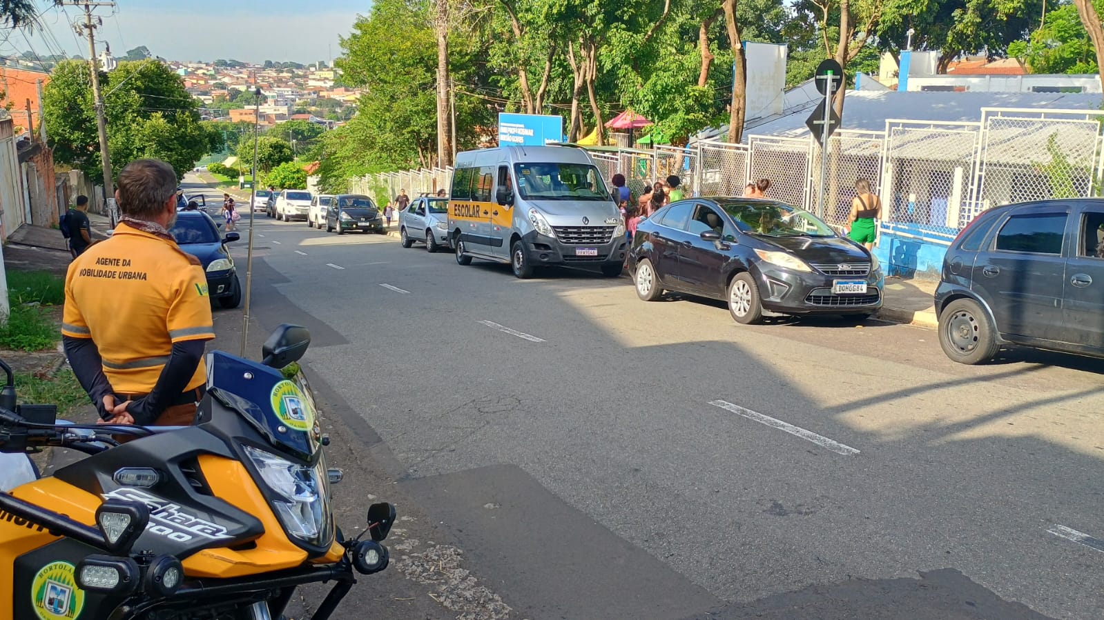 Continua reforçada a fiscalização e o suporte para a segurança viária realizada pela Prefeitura, por meio de agentes de trânsito da Secretaria de Mobilidade Urbana, no entorno das unidades de ensino em Hortolândia nesta segunda semana de volta às aulas. “Nosso objetivo é garantir a fluidez do trânsito sem acidentes e intensificando a segurança viária. Este aumento da fiscalização continua durante esta semana, sempre com o objetivo de contribuir com pais, alunos e motoristas do transporte escolar. Pedimos que todos continuem respeitando o limite de velocidade permitido para o tráfego e o estacionamento correto, nas vagas regularmente destinadas”, comenta o diretor de operações da Secretaria de Mobilidade Urbana, José Eduardo Vasconcellos.