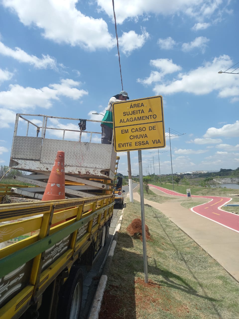 Prefeitura sinalizou vias no Lago da Fé, nesta quinta-feira (31/10); placas também serão afixadas em vias próximas às lagoas do Jd. Amanda, à lagoa do Jardim São Bento e ao parque socioambiental Chico Mendes