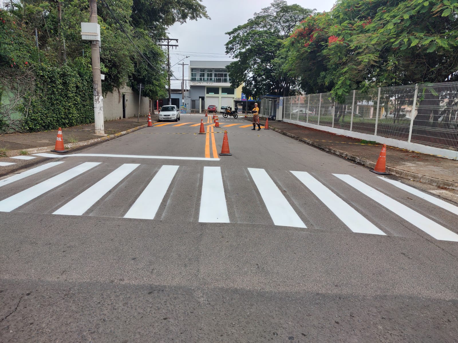 A segurança viária é prioridade em Hortolândia e o trabalho das equipes da Prefeitura, realizado diariamente, para contribuir com um trânsito sem mortes passa por diversas etapas. A sinalização de solo é uma importante ação que garante a maior visibilidade para pedestres, motoristas e ciclistas. O reforço e a implantação também garantem a organização do fluxo nas vias, no entorno de unidades de saúde e ensino, comércios, praças, parques, além das residências. De acordo com a Secretaria de Mobilidade Urbana, em 2024, aproximadamente 20 mil metros quadrados de sinalização de solo foram reforçados ou implantados nas ruas e avenidas da cidade.