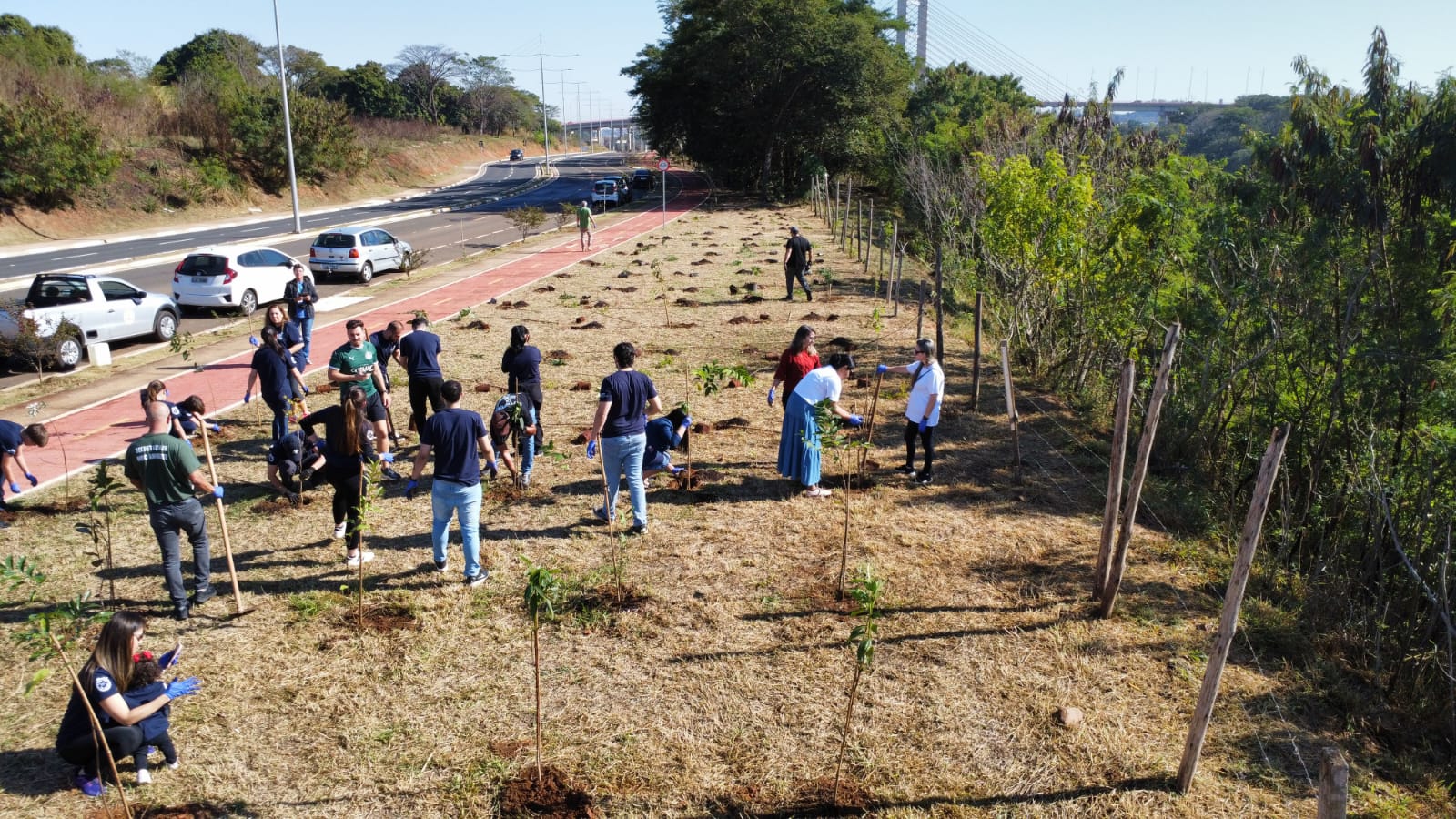 O plantio foi realizado por servidores da Secretaria de Meio Ambiente, Desenvolvimento Sustentável e Assuntos Climáticos, junto com funcionários da empresa DC Logística, que doou 457 mudas ao Poder Público. As secretárias da Pasta, Eliane Nascimento (titular) e Sunne Santos (adjunta) também participaram do plantio.