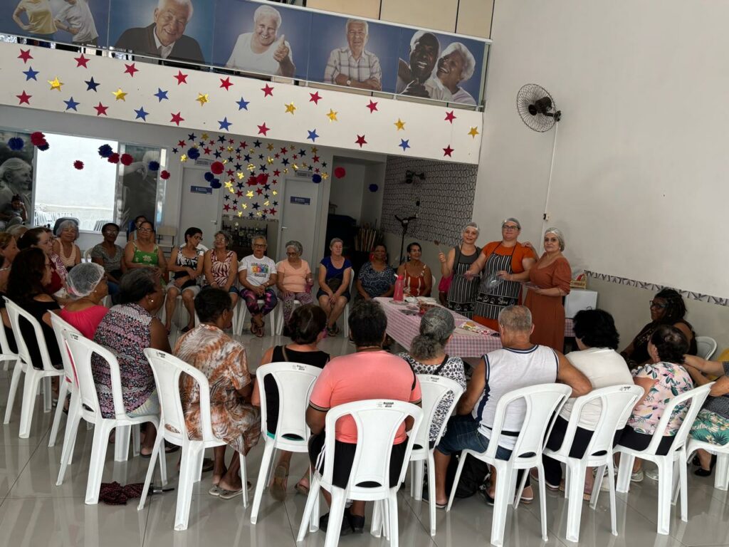 Oficina de Páscoa reúne idosas para aprender técnicas de manuseio de chocolates no CCMI do Jd. Amanda