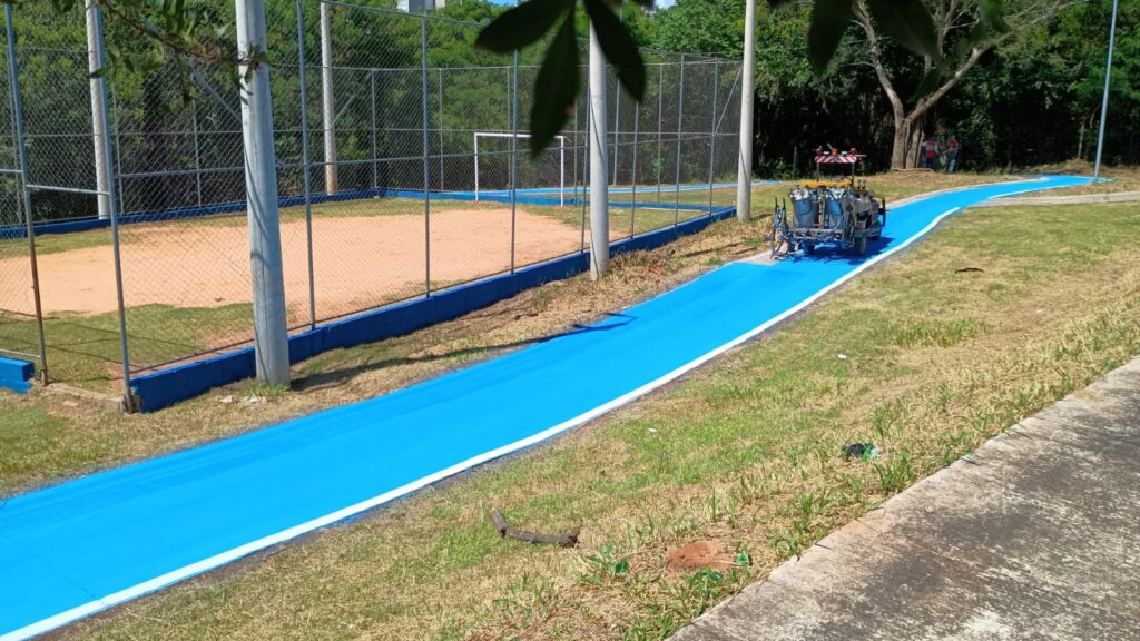 Espaço público de lazer no Jardim das Flores recebe pintura na pista de caminhada