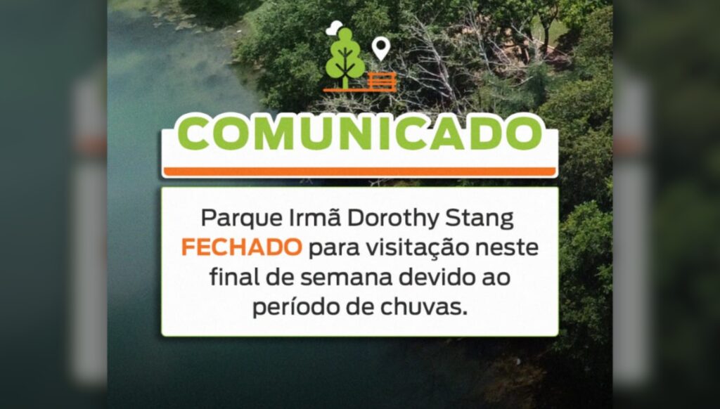 Parque Irmã Dorothy Stang será fechado neste final de semana diante da previsão de fortes chuvas