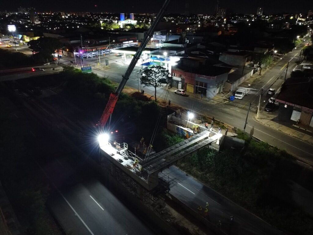 Empresa contratada pela Prefeitura realizou o içamento de vigas, na noite desta segunda-feira (16/12); previsão é que o serviço seja
