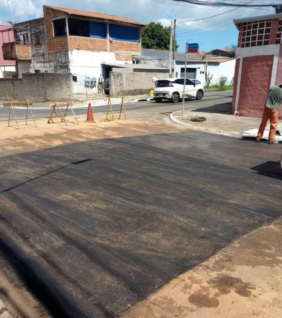 Equipes da Prefeitura de Hortolândia realizaram conserto de afundamento de solo e aplicação de nova capa asfáltica na área Está
