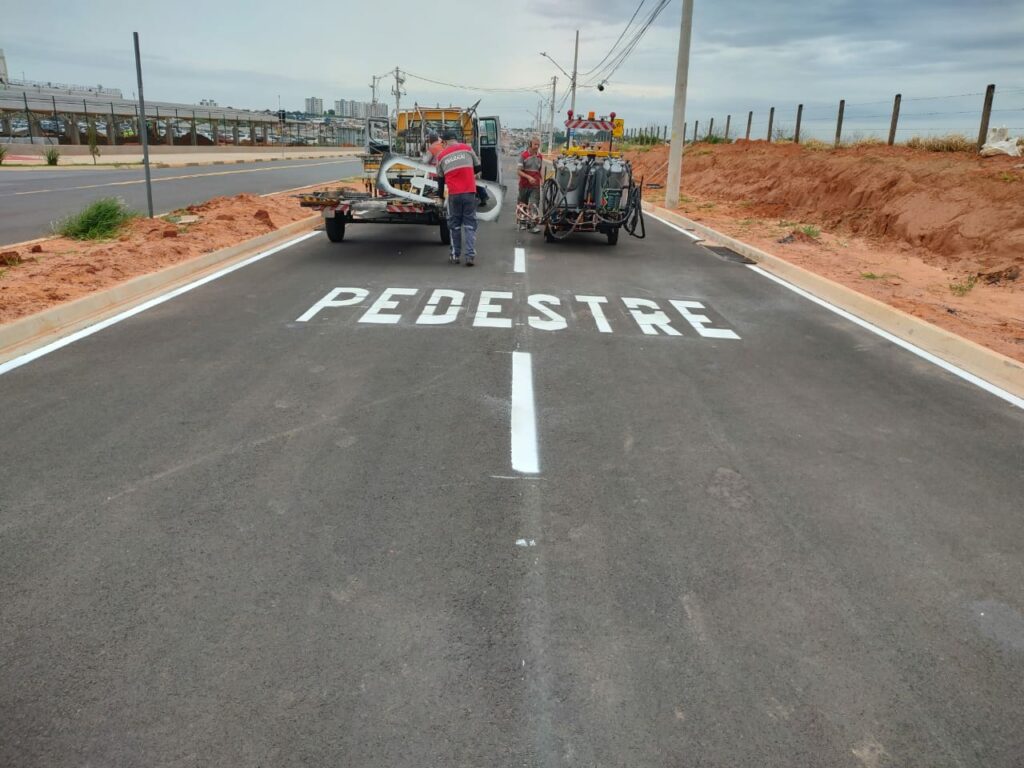 Duplicação da Av. Sabina Baptista de Camargo recebe implantação de sinalização de solo