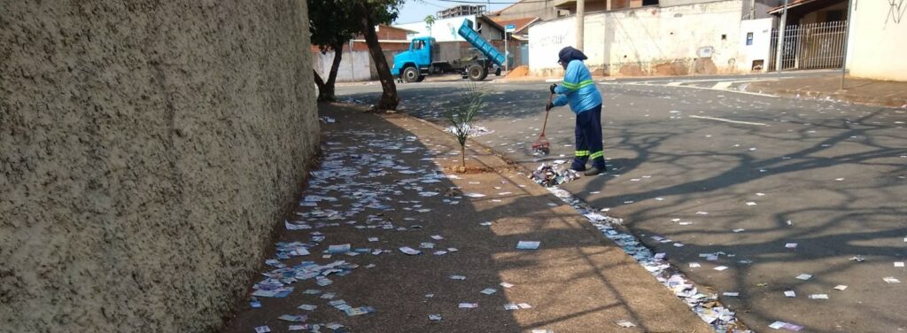 Equipes da Prefeitura de Hortolândia trabalham na limpeza dos “santinhos” nas ruas