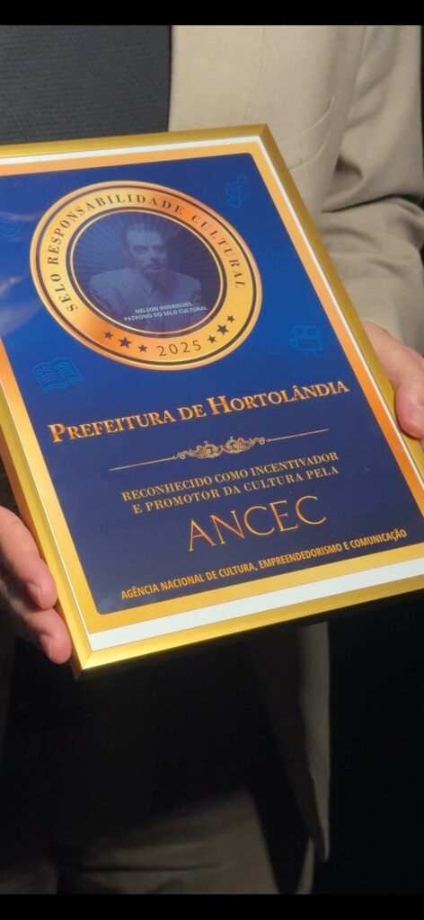 Prêmio foi concedido à Secretaria de Cultura da Prefeitura pela Agência Nacional de Cultura, Empreendedorismo e Comunicação (ANCEC); cerimônia de
