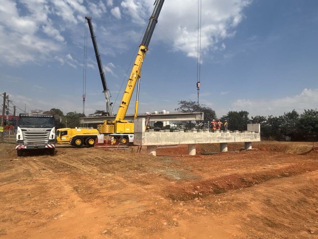 Vigas começam a ser colocadas na obra do viaduto na Vila Real, em Hortolândia