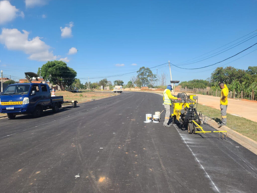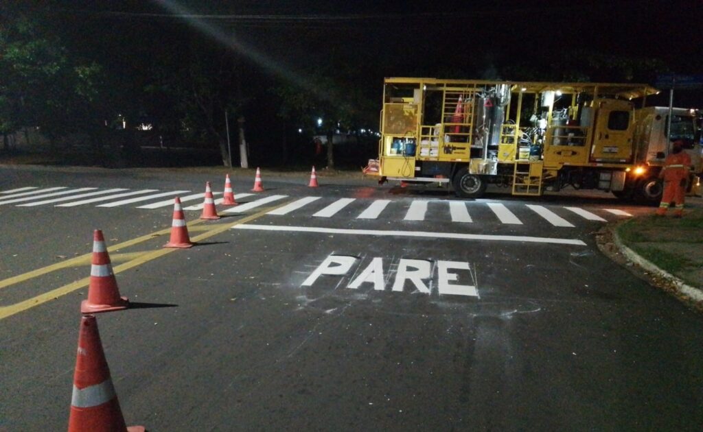 Ruas de acesso ao novo viaduto do Jardim Rosolém recebem nova pintura de sinalização de solo